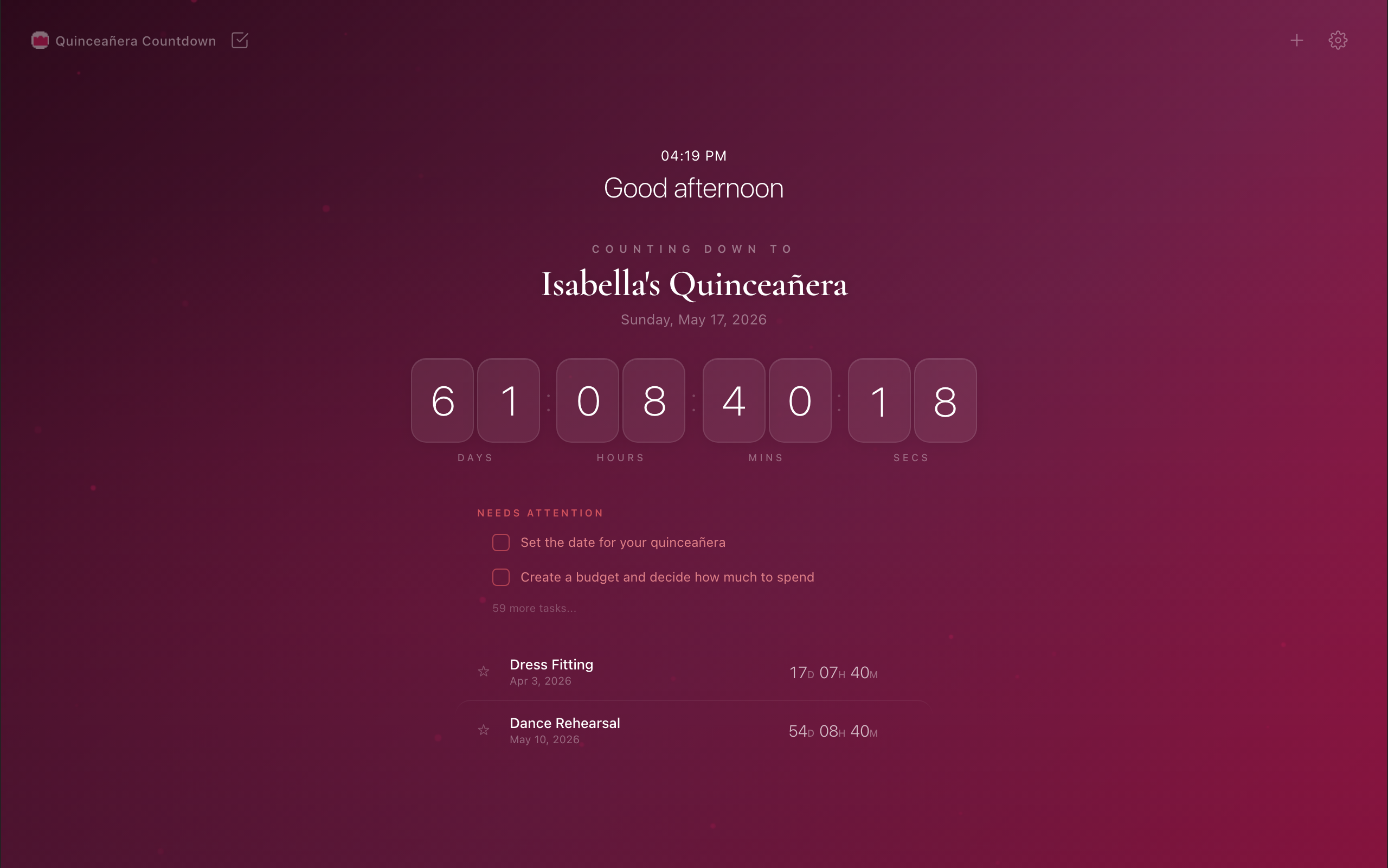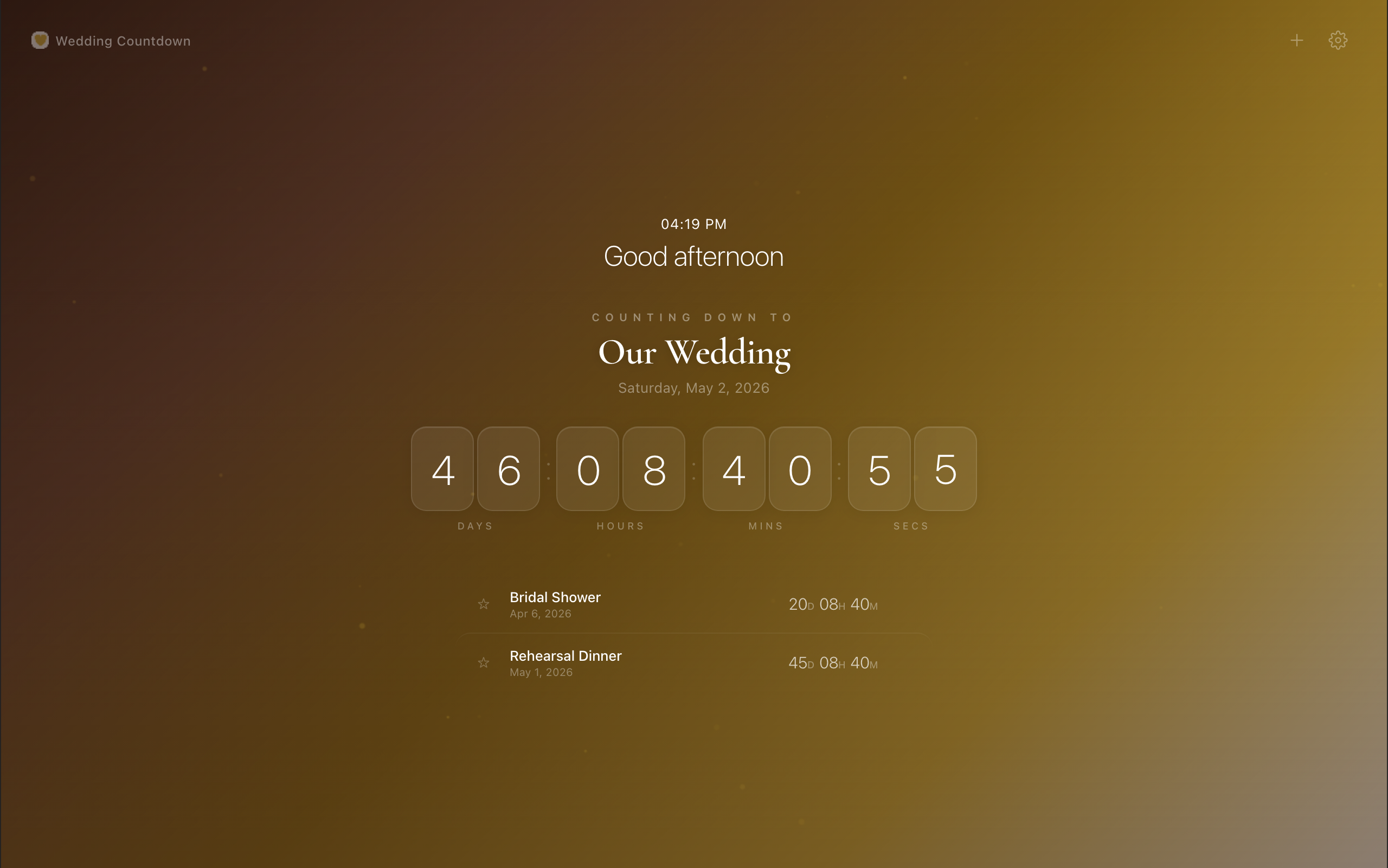 Beautiful full-screen countdown with live timer